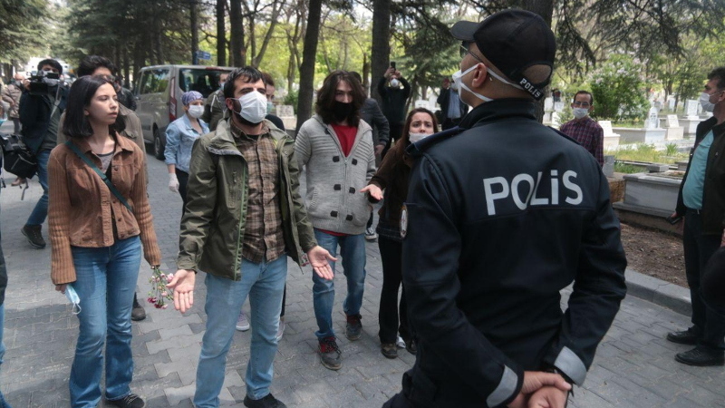 Mezarlık girişini abluka altına alarak girişi engellemeye çalışan polis tüm flama ve materyallere el koydu. Tüm bu engellemelere karşı içeri giren gençlik örgütleri ellerinde taşıdıkları İbrahim Kaypakkaya, Deniz Gezmiş, Mahir Çayan fotoğrafları ile mezarlık içinde sloganlarla yürüyüş gerçekleştirdi. Yürüyüşün ardından aralarında Yeni Demokrat Gençlik(YDG) okurlarının da olduğu birçok gençlik örgütünün imzasını taşıyan basın açıklaması gerçekleştirildi.