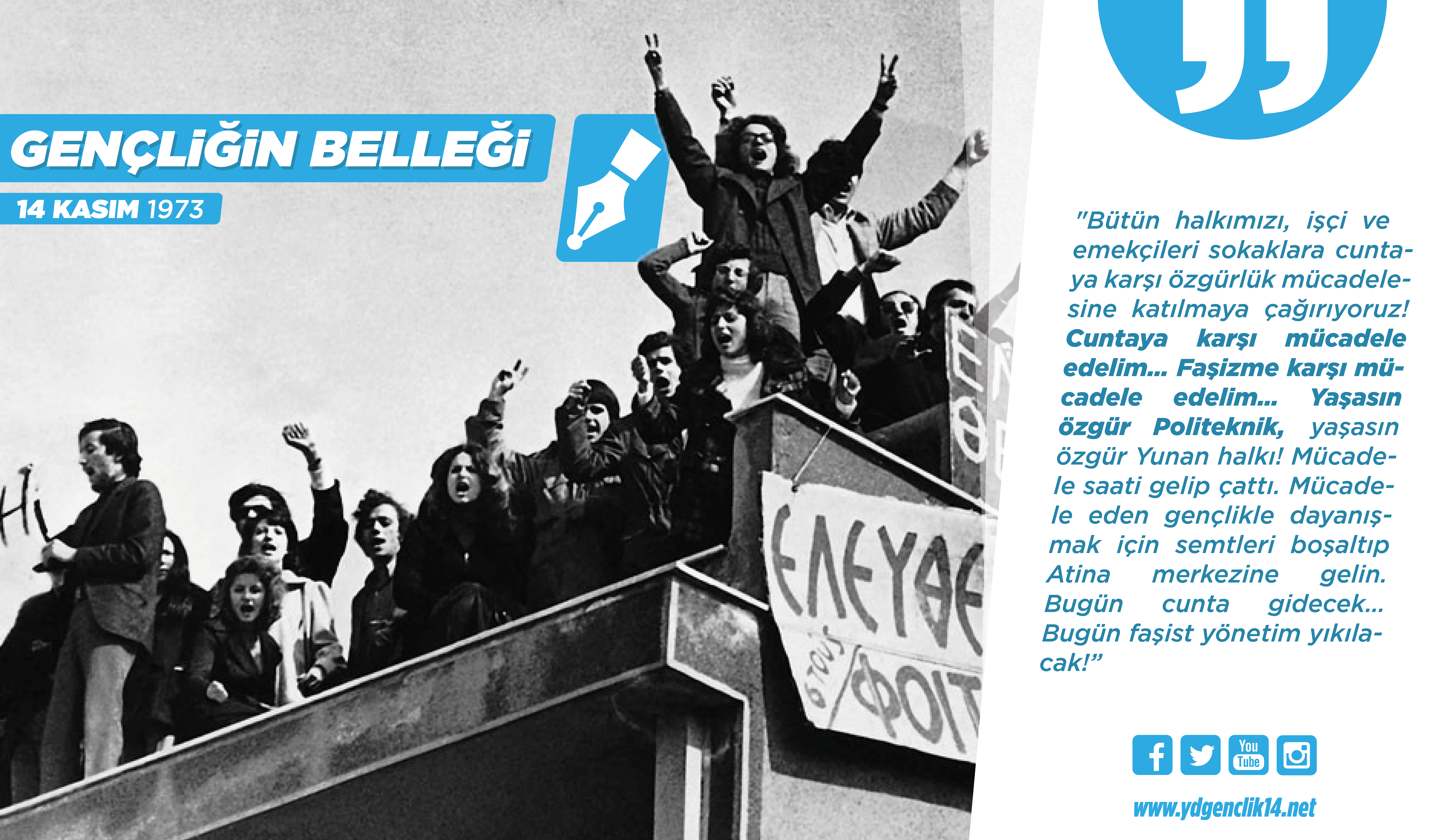 Politeknik gençliğinin direnişi ve talepleri Yunan halkının zulüm ve baskılar karşısındaki “Eşitlik ve Özgürlük” taleplerinin dışavurumuydu. O yüzdendir ki işgal sonrası yapılan ilk çağrıda kitleler akın akın kampüsleri doldurmuş ve direnişe katılmıştır. Politeknik Direnişi cuntanın sessizlik perdesini yırtan bir isyan çığlığıydı. Bugün içinde bulunduğumuz sessizlik ve korku iklimine karşı kitlelerin öfkesi kabarıyor. Öyleyse gençlik olarak görevimiz bu öfkeyi kampüslere taşımak, geleceksizleştirme, yozlaştırılma ve “ehlileştirme” politikalarına karşı gençliğin dinamizmi ve isyanını örgütlü hale getirmektir.