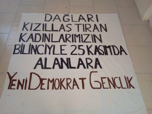 ‘Dağları Kızıllaştıran Kadınlarımızın Bilinciyle 25 Kasım’da Alanlara’ diyen YDG tüm kadınları erkek egemen sisteme karşı katledilen kadınların hesabını sormaya, YDG saflarında alanlarda olmaya çağırdı.