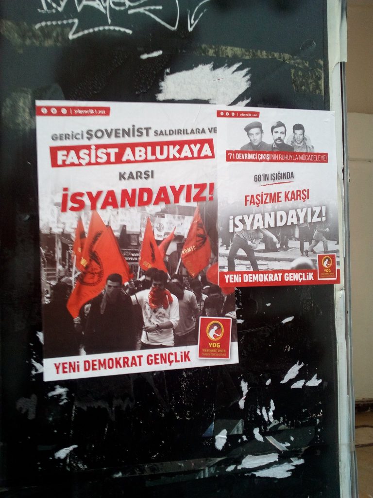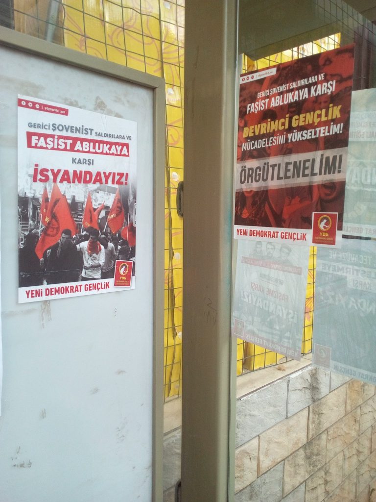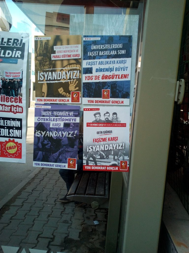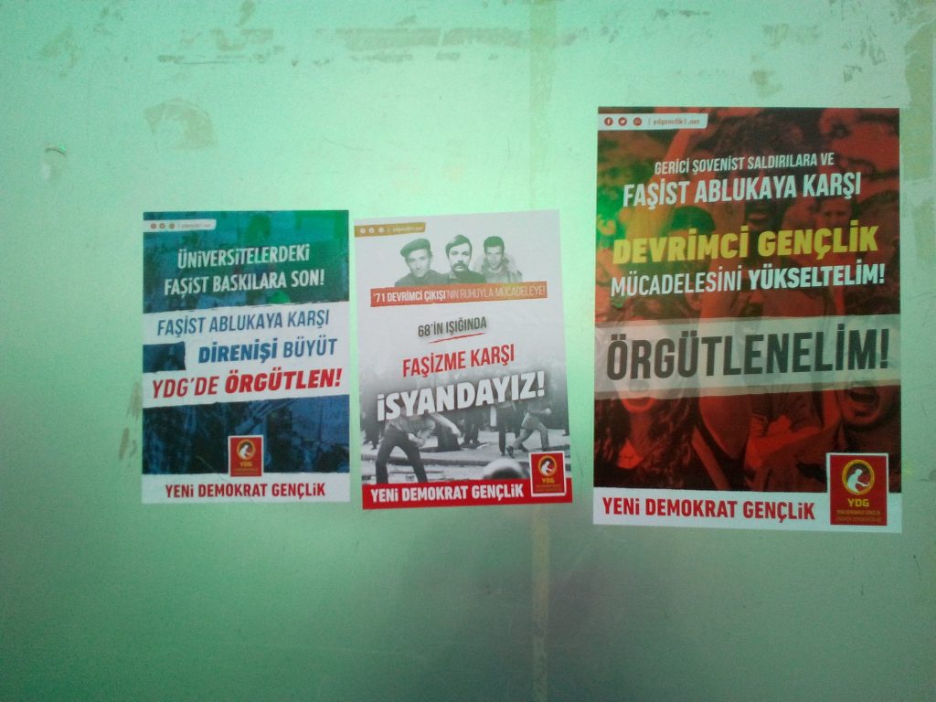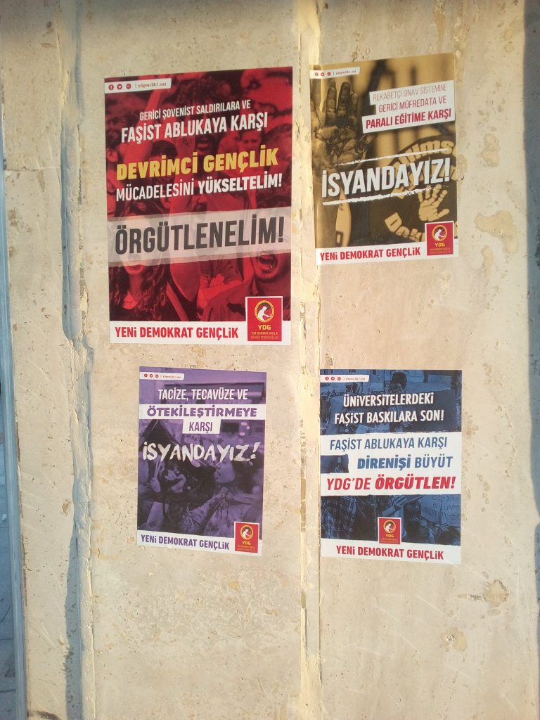 İzmir YDG çalışmalara dair şunları ifade etti: “Faşizmin yoğun saldırıları altında YDG olarak başlattığımız örgütlenme hem de devrimci gençlik mücadelesini büyütmek anlamında önemli bir yerde durmaktadır. İzmir YDG olarak kampanyamız kapsamında Buca ve Alsancak’da afiş ve sticker çalışmalarının yanı sıra Dokuz Eylül Üniversitesi’nde bildiri dağıtımı da gerçekleştirdik. Bildiri dağıtımı sırasında yapılan tartışmalarda üniversitelerdeki yoğun baskılar ve akademik mücadelenin önemine dair konuşmalar gerçekleştirilerek örgütlenme çağrılarında bulunduk.”