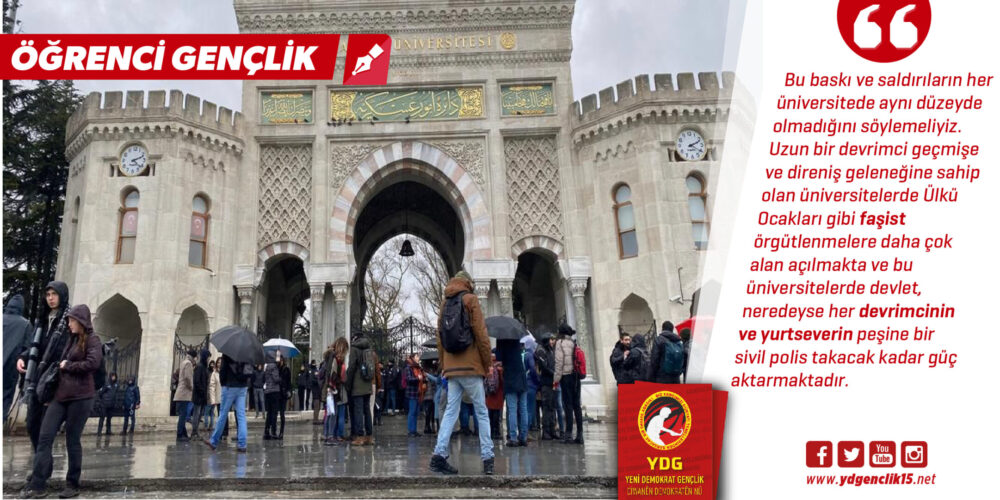 Üniversiteler tarihinden beri; ilerici, demokrat ve devrimci gençleri bağrından çıkaran bir yapıya sahiptir. Yolumuzu aydınlatan ‘68 kuşağı da üniversite sıralarında okumuş, öğrenmiş ve yine öğrendiklerini pratikle buluşturmasını bilmiştir. Önder İbrahim Kaypakkaya’nın ilk siyasi pratikleri de yine üniversitedeki saldırılara karşı olmuştur.