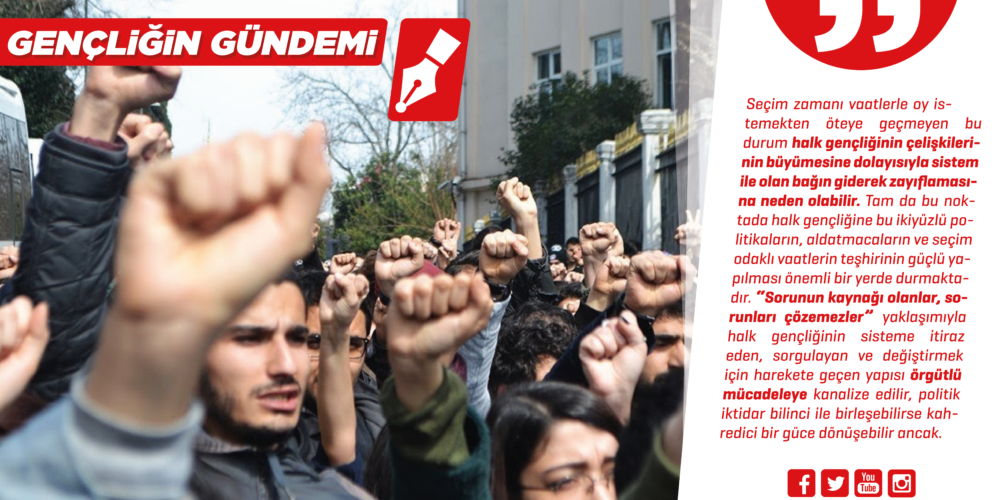 Gelecekte sömürü çarkının başında kimin olacağına dair hâkim kliklerin dalaşı sürüyor. Egemenler kendi gelecekleri uğruna başta gençlik olmak üzere tüm halk kitlelerinin geleceğini gasp ediyor. Açlık, sömürü, baskı ve korku...