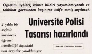 Türkiye’de ve dünyada baskıcı rejimler boyunduruk altına almak istedikleri üniversitelere polis sokabilmek için hep çaba göstermiş; buna engel olan yasaları ve düzenlemeleri kaldırmak istemişlerdir.